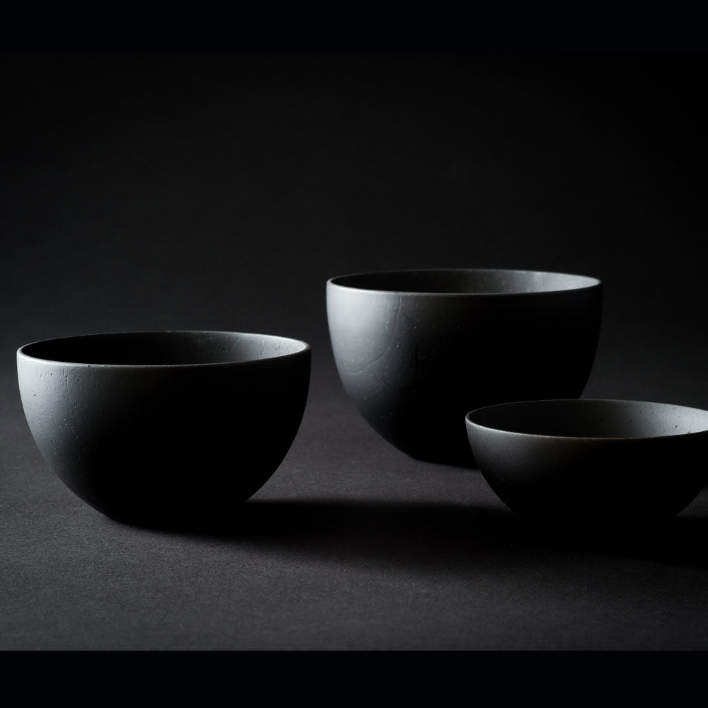 キリっと引き締まった竹炭のカラーリングながらもやさしいカーブが特徴のボウルです。