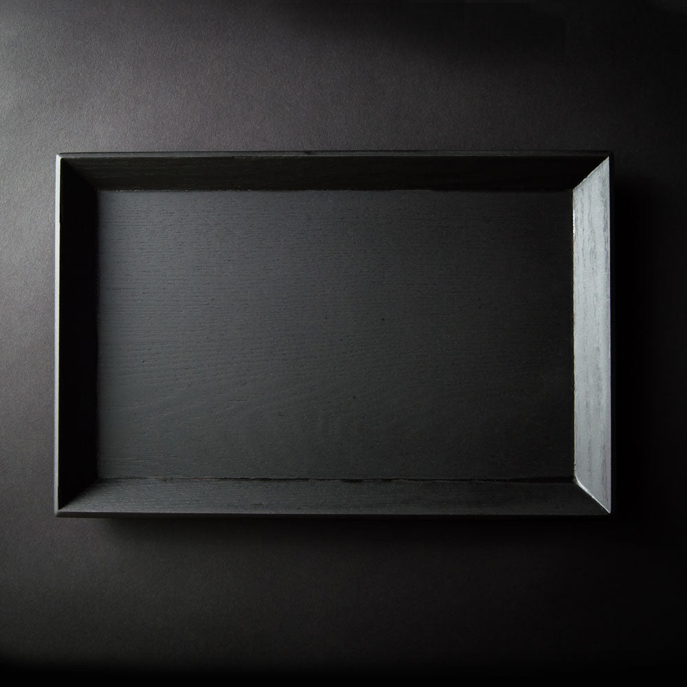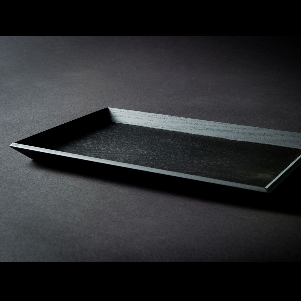 ソリッドなフォルムとマットな黒でとてもクールな印象のトレーです。お料理を直接盛り付けて粋な演出食器としてもお使いいただけます。