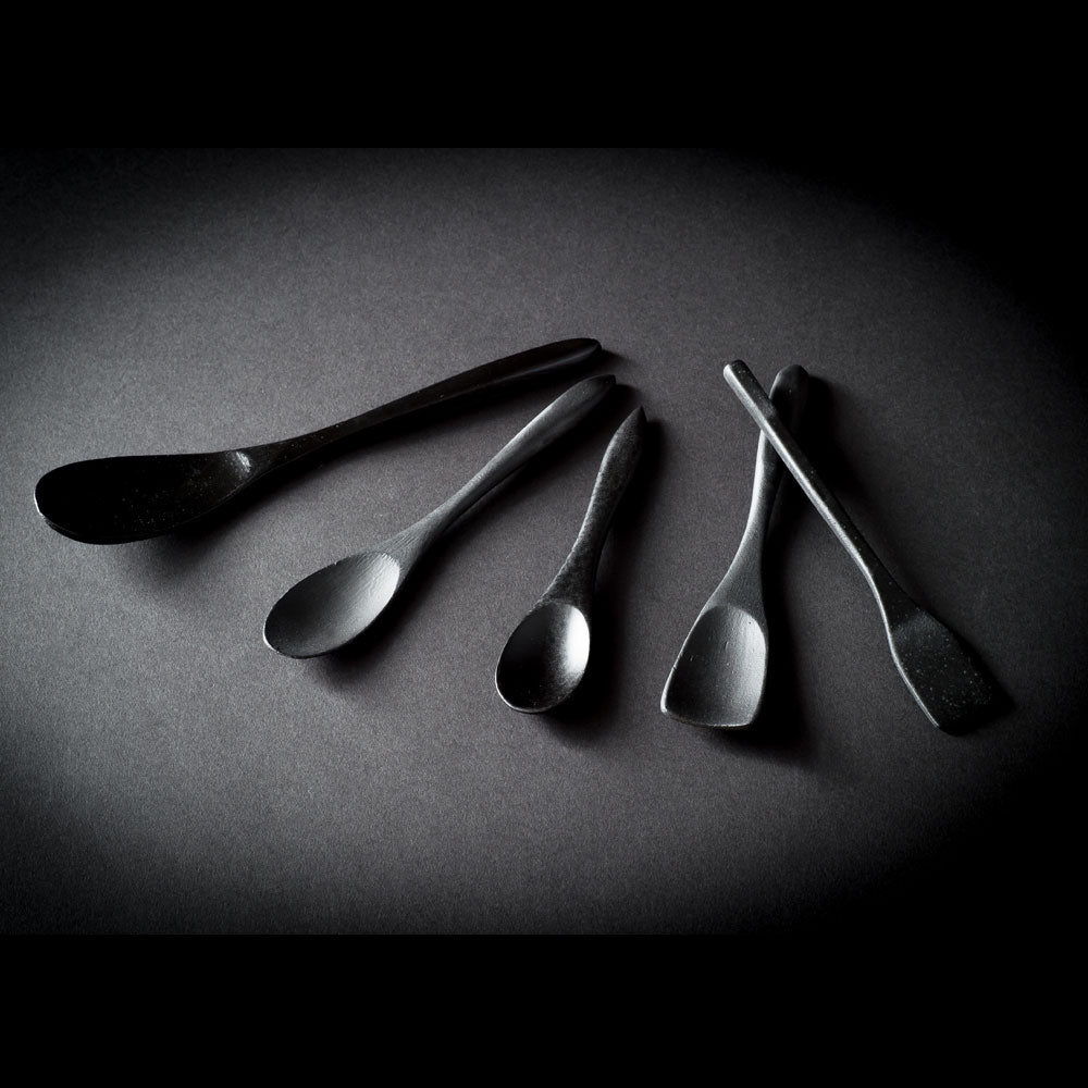 個性的な竹炭塗のカトラリーは小物ながらもアクセントになるアイテム。シリーズで集めるのも楽しみの一つです。