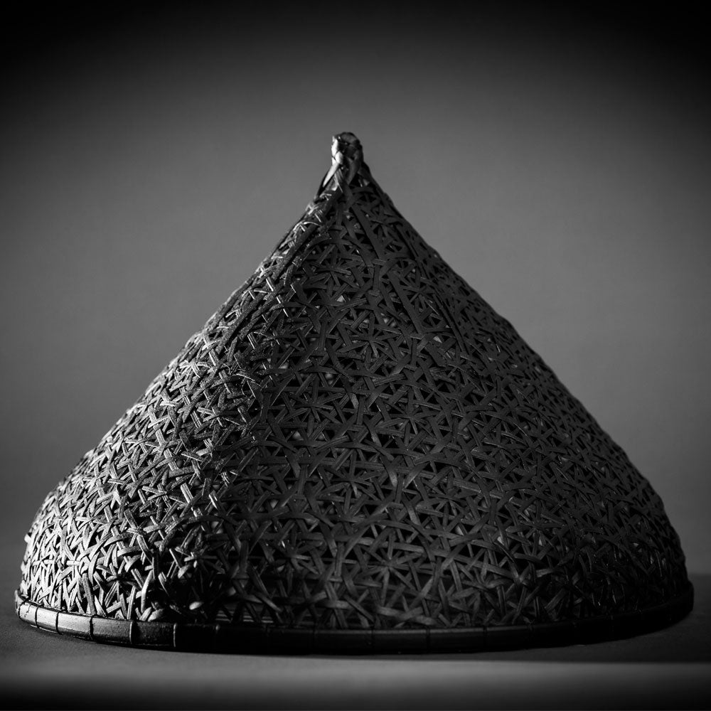 こちらは竹を紡錘型に編んだフートカバー。上部に細工をし、ソケットを入れる事でランプシェードとしても使用が可能。アイデア次第で色々な用途にお使いいただけます。