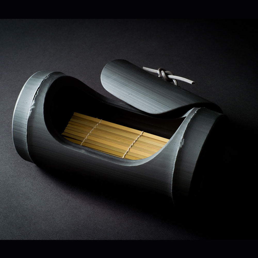 こちらのクリブタは竹の風合いをそのままに、節間を利用。蓋を開けるドキドキ感を演出する器です。