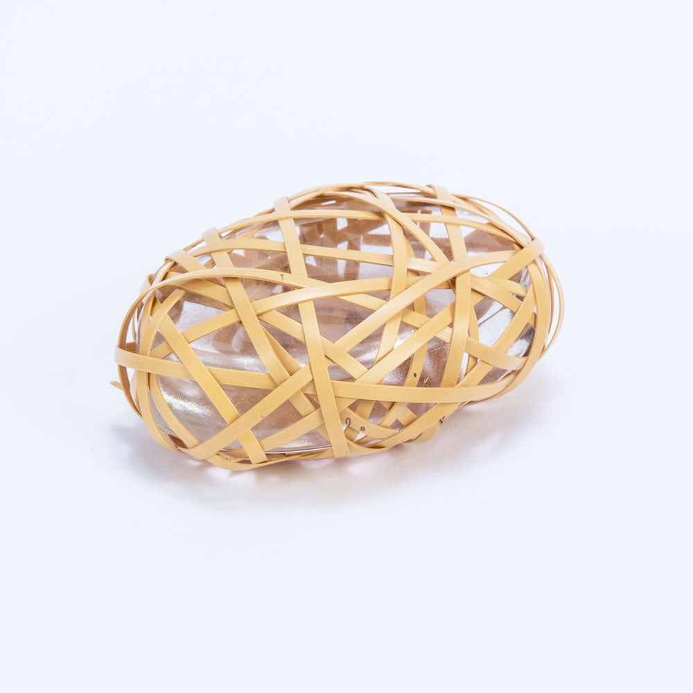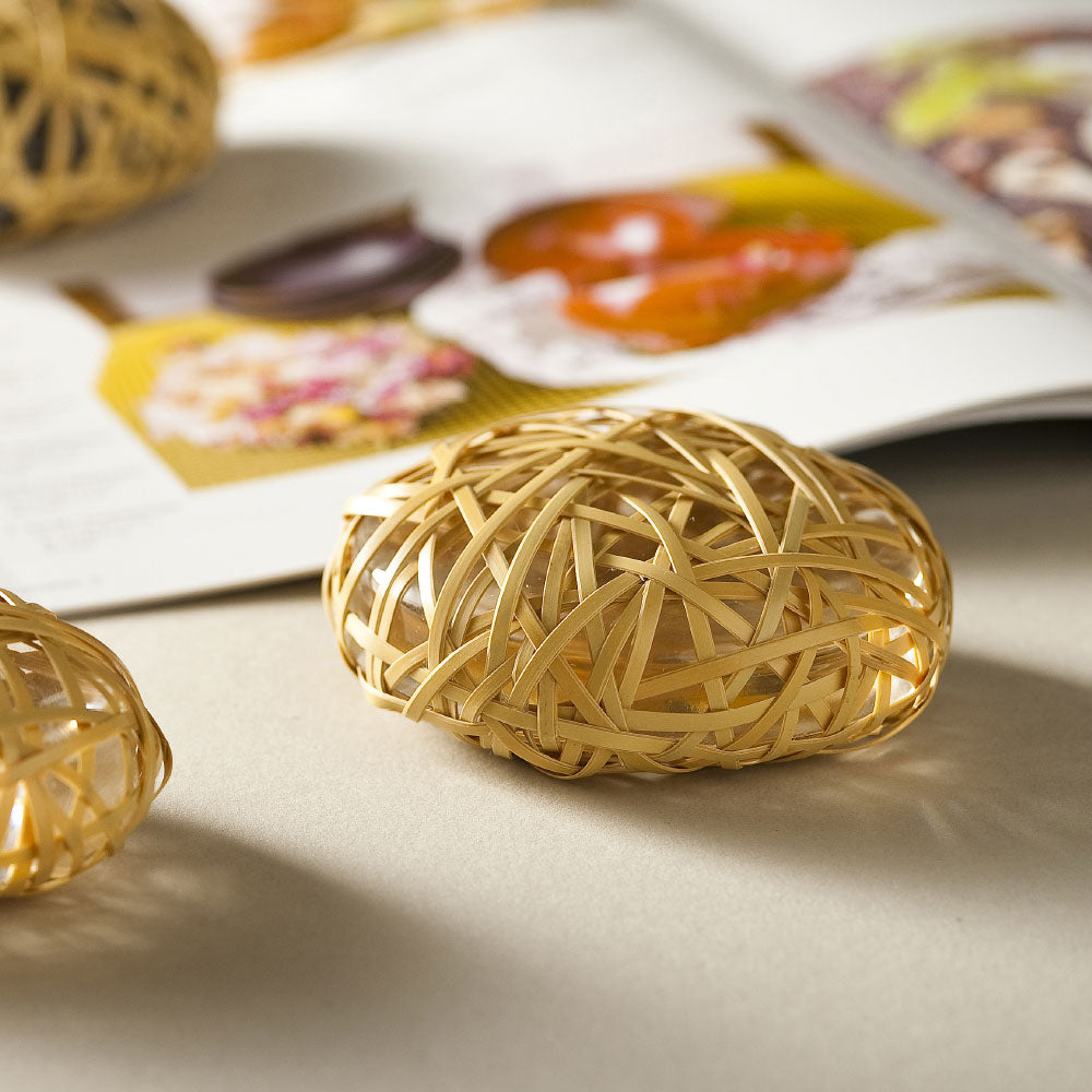 竹にくるまれたガラス製のぺーパーウェイトは、光を浴びるととても美しい影を落とします。見ているだけでうれしくなるアイテムです。