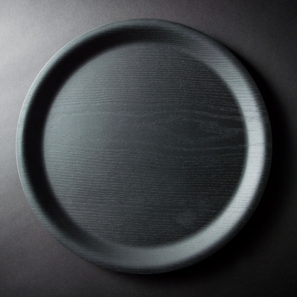 木製の丸型トレーに竹炭塗を施しました。適度な大きさがあるのでサービストレーとして活躍するアイテムです。