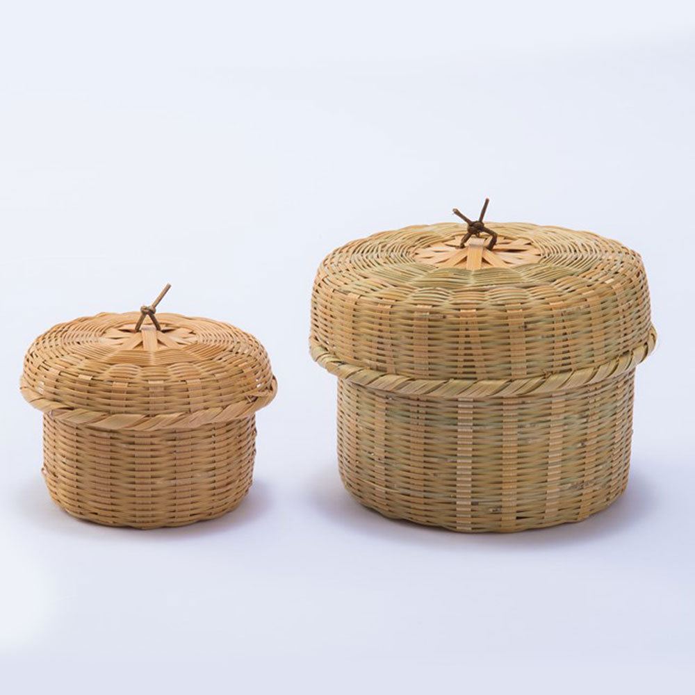 素朴な形状の蓋付かごです。小物入れ、贈り物のパッケージ等、アイデア次第で様々な用途にご使用いただけるアイテムです。