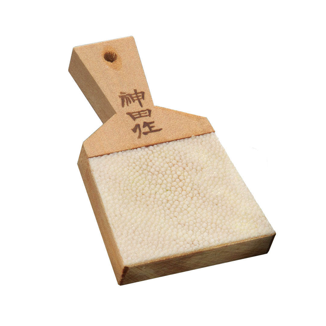 生わさびの風味と辛味を際立させ、より細かくクリーミーにすりおろすサメ皮おろし。