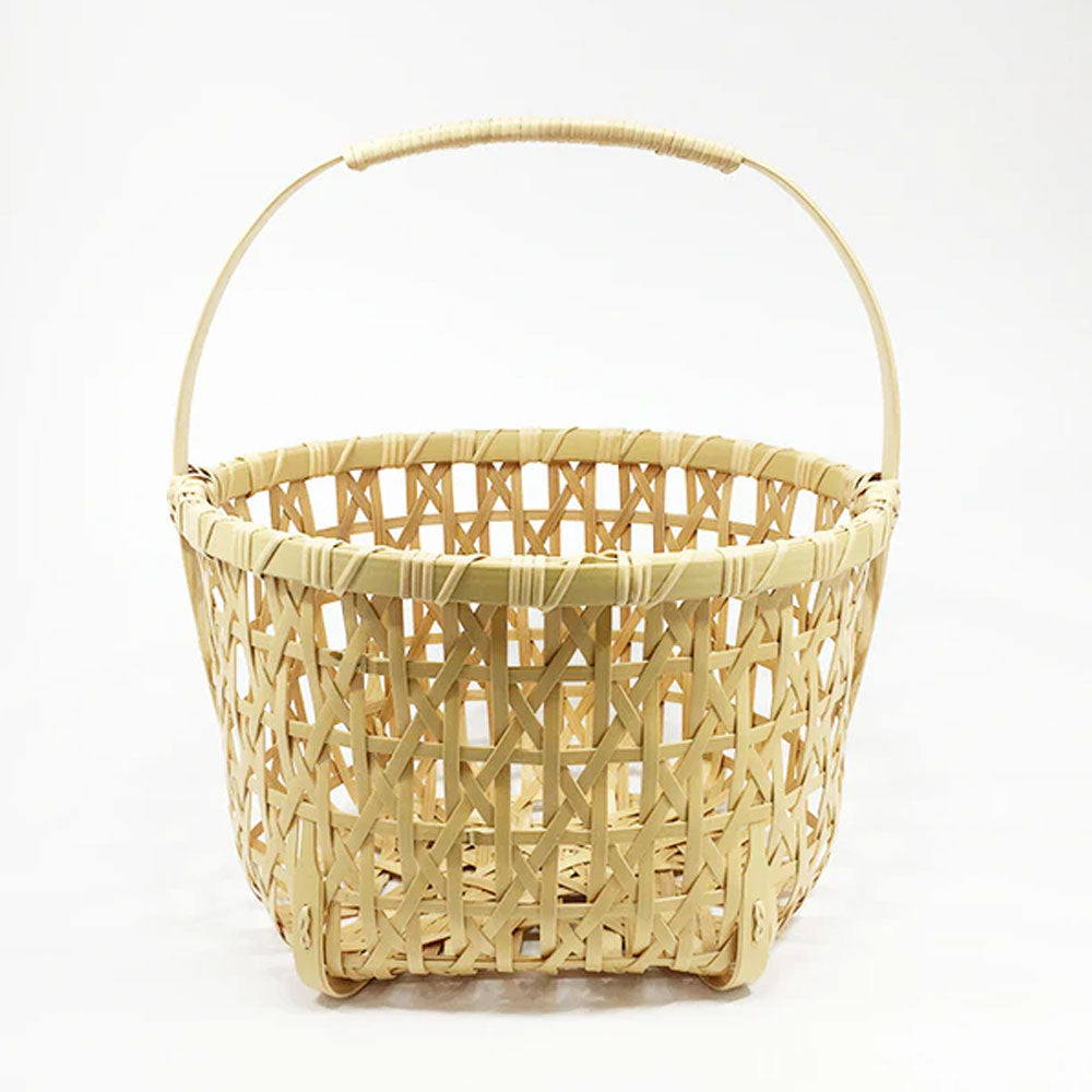 湯篭とはお風呂グッズを入れる篭として、温泉文化の残る別府で使われる篭です。底には足がついており、水気の気になる場所でも安心して使えます。おしゃれな差し六ツ目編で現代風にアレンジされており、インテリアのわき役としても活用できる篭です。