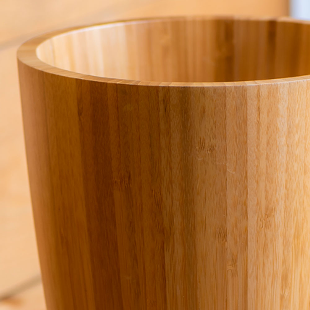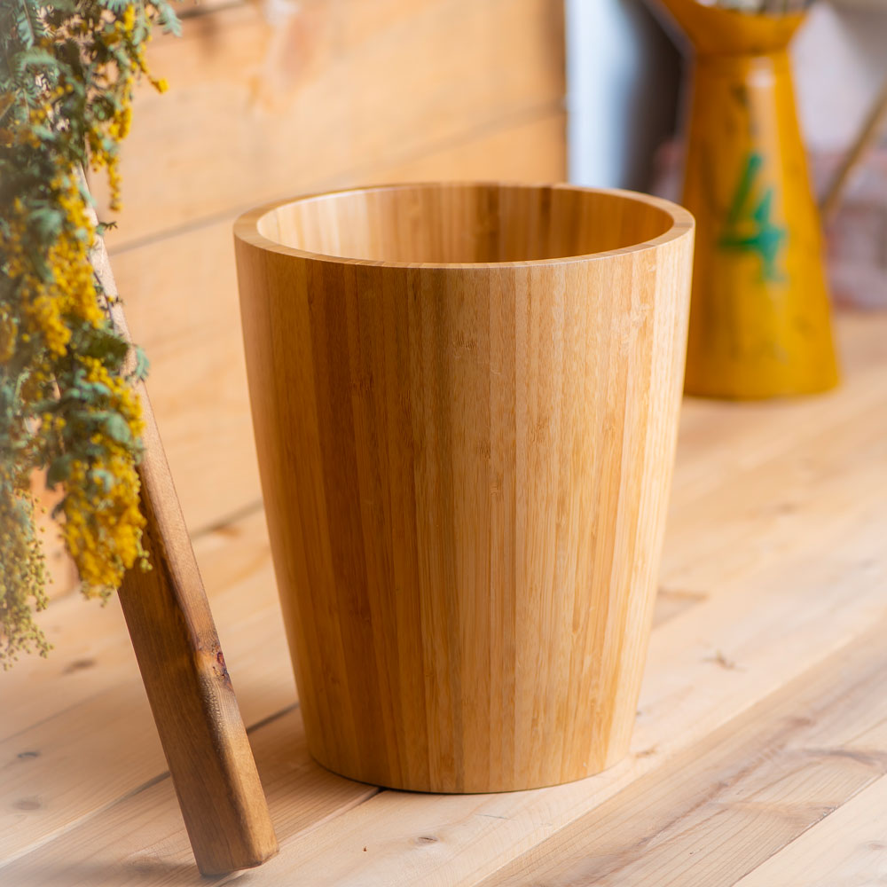 繊維が平行になるように圧着された竹の集成材で作られたダストボックスです。積層模様の美しさが映えるひとしな。ダストボックスでありながらインテリア小物としても優秀です。