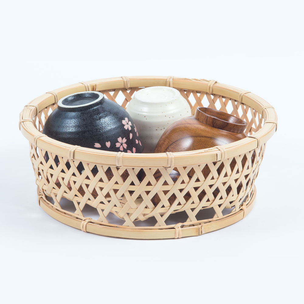昔ながらの茶碗用水切り篭。白竹の清涼感と素材感でインテリアのアクセントとしてもお使いいただけます。