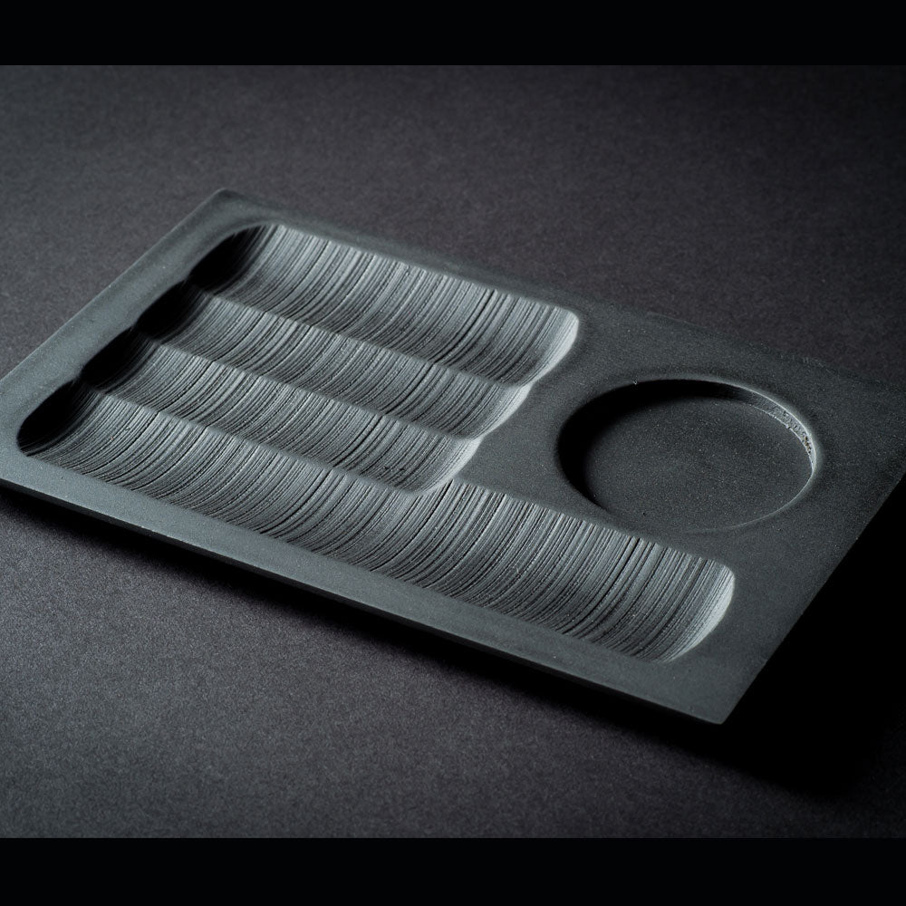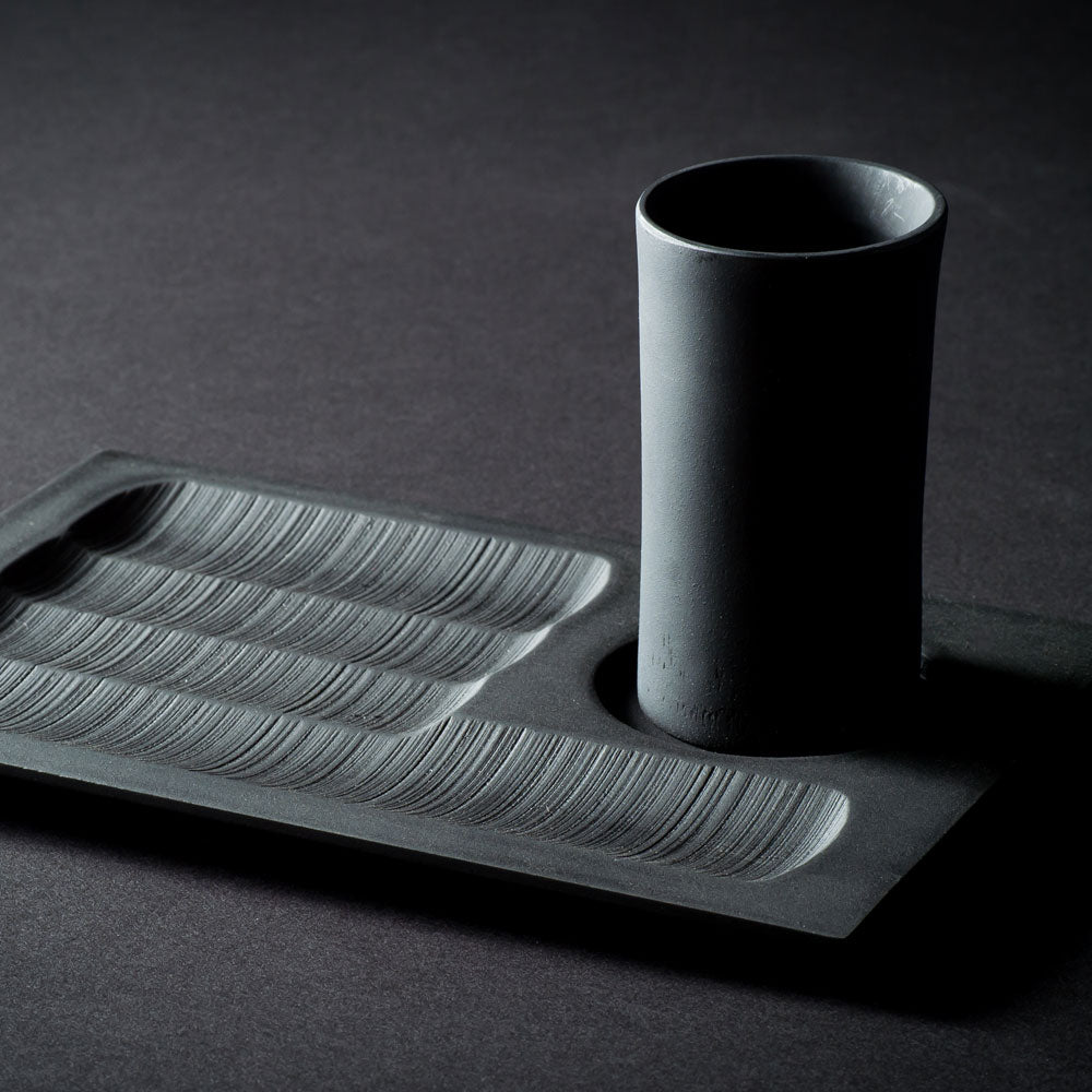 エコマーク取得の竹微粉炭に特殊配合の塗料を混ぜたものを塗布し、SDGs bamboo WAREとして実用新案を取得しました。竹の更なる有効利用を図る画期的な商品です。これらの商品の特徴はさらっとしたマット感のある黒で、和にも洋にもなじむデザインとなっております。
