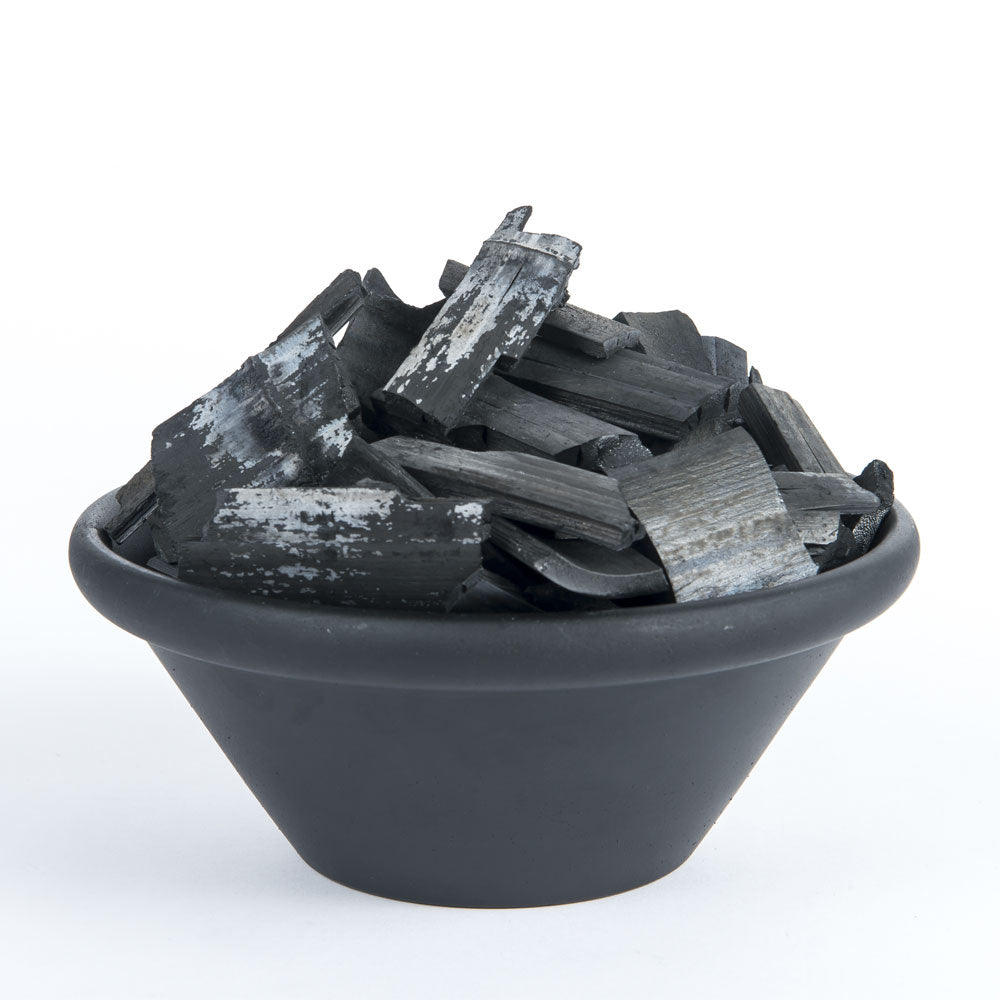 竹炭塗のボウルに消臭効果のある割炭をたっぷりと盛りました。